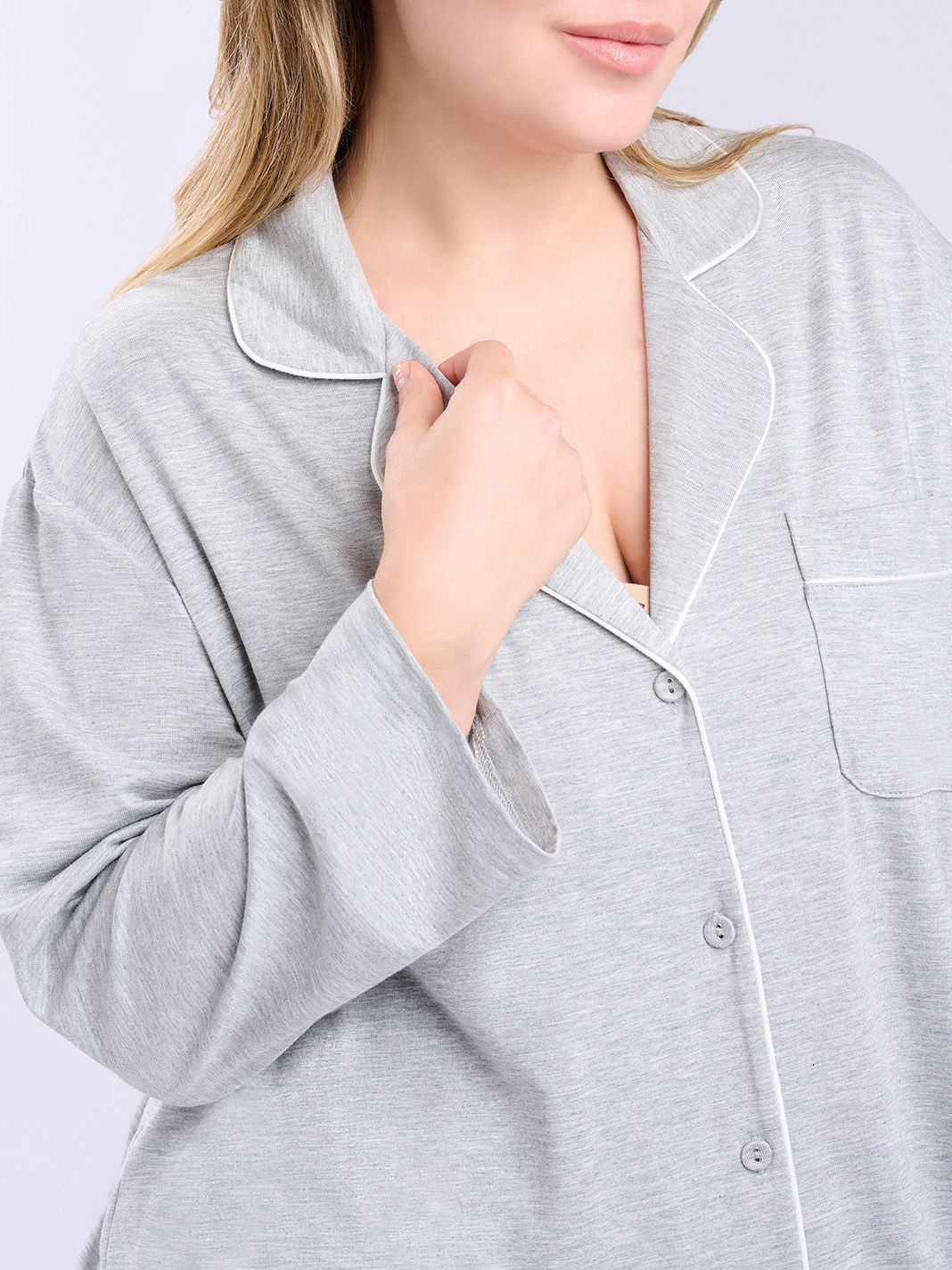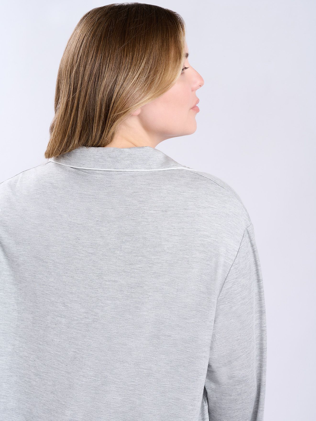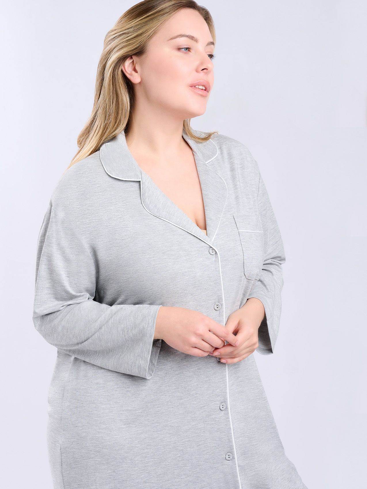 Женская сорочка 5140SDX бренда Indefini выполнена из мягкой вискозной ткани с добавлением полиэстера и эластана. Модель представлена в светло-сером цвете и отличается прямым свободным кроем.