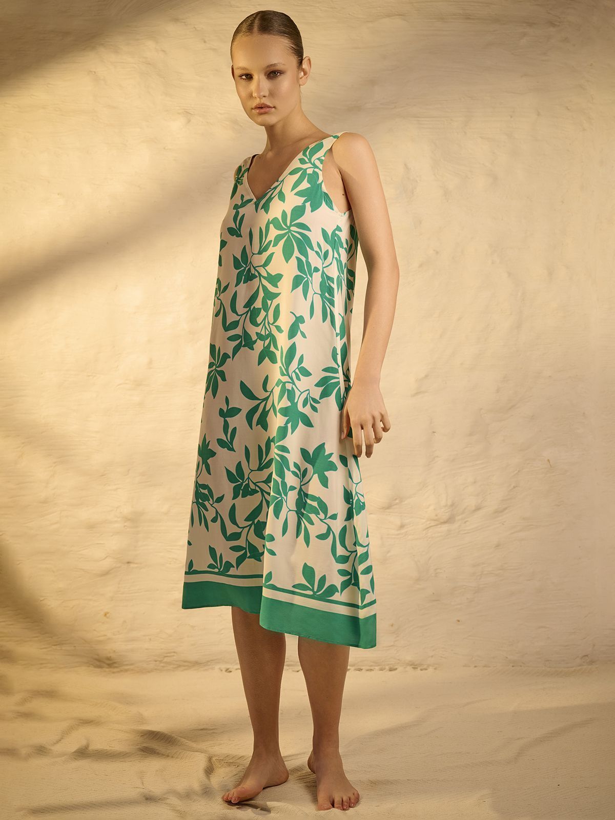 Легкий летний сарафан свободного кроя. Вырез на спине фиксируется тонкими завязками. Модель не сковывает движения, а дышащая и нежная вискоза в составе идеальна для самых жарких дней.